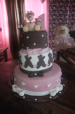 O aniversário de um aninho da Lara foi comemorado com muitas ursinhas.
